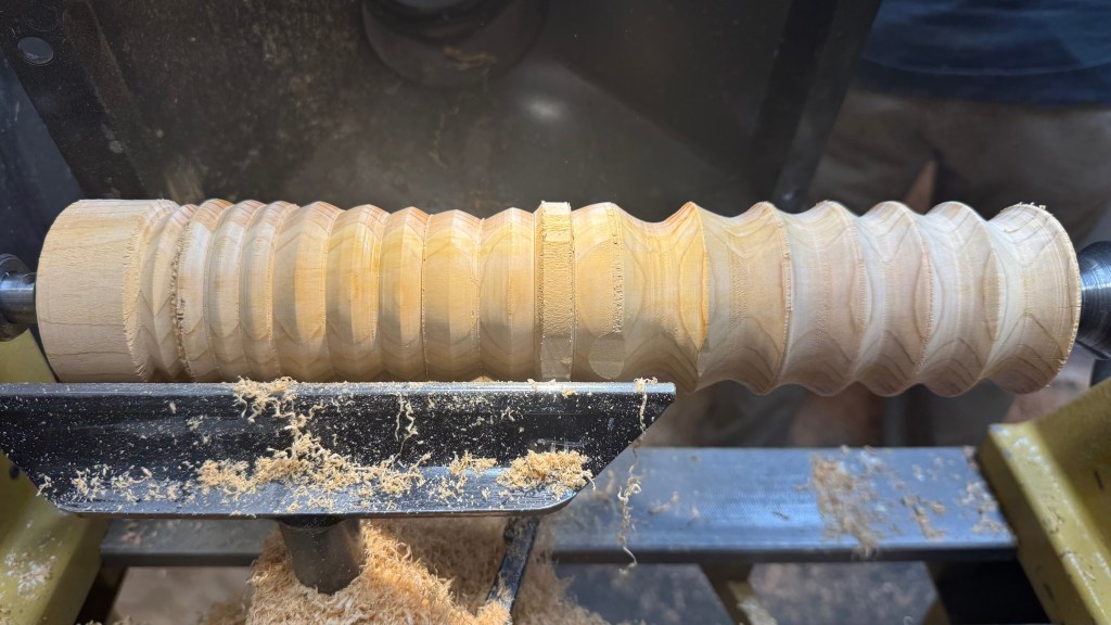 green wood, i learned, is the beginner’s friend. it forgives you. you can make all sorts of clumsy mistakes and it still gives you that satisfying, smooth cut. the first spindle i turned was just for practice, to learn how the tools felt. the second one introduced beads and valleys, those decorative bumps and dips that sound easier than they are. i spent most of one session trying to remember which wrist twist made which shape. sometimes i guessed right. other times, the wood let me know i hadn’t.