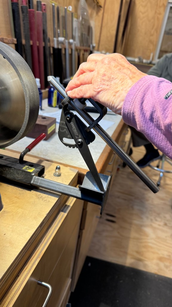 she walked us through the grinder’s rhythm: approach the wheel gently, find the bevel, hold steady, watch for sparks. every angle matters, every motion leaves a mark. when you get it right, the edge gleams like a mirror. when you don’t, it either won’t cut or it digs in like a villain. sharpening teaches humility in the same way turning does. you’re never quite done learning. it also teaches patience, because there’s no rushing someone mid-monologue when they’re explaining burr formation for the third time.